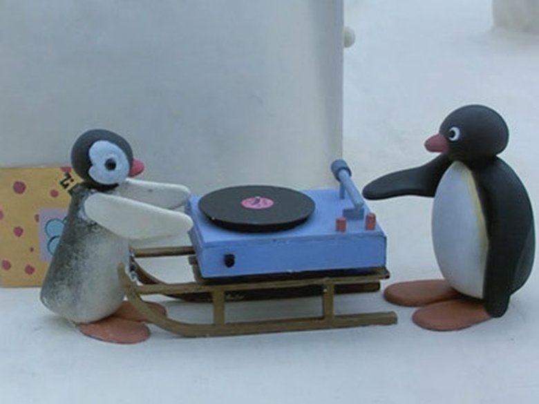 Pingu comes out of his igloo and sees Pingo, on his skis, nearby. Pingu gets his own skis, goes to meet Pingo, and they agree to have a cross-country skiing race. As they are very evenly matched, it soon gets competitive, and Pingu tries to slow up Pingo by putting his ski-stick between Pingo’s legs. Pingo does the splits and stops, but soon gets going again and quickly catches up with Pingu. They come up to another rather older cross-country skier who is travelling more slowly and, as they go past him one to each side, Pingu surprises the other skier by shouting into his ear. The older skier is understandably none too pleased, shouting angrily and waving his stick at Pingu and Pingo as they race off ahead. Both Pingu and Pingo think this is rather funny! A little while later Pingu and Pingo start arguing again, and Pingu repeats his trick with the ski-stick. This time Pingo falls over and is somewhat annoyed, while Pingu stops and has a good laugh. Pingo makes a snowball and throws it at Pingu, knocking Pingu backwards off his skis. As Pingu gets up, the older skier comes past, stops, waves his ski-stick and tells off Pingu and Pingo. Pingu mockingly mimics the older skier, and then he and Pingo start off on their race again. Again they go past the older skier, but this time downhill where they’re all travelling faster. After various evasive manoeuvres by all three, Pingu ends up crashing into the older skier, falling over and breaking a ski. The older skier tells Pingu it was all Pingu’s fault, and starts to ski away. Pingu starts to cry, and the older skier takes pity on him and turns back. He then kindly helps Pingu get home by giving Pingu a ride on the back of his skis to the starting point of the race, where Pingo is waiting to flag them in!